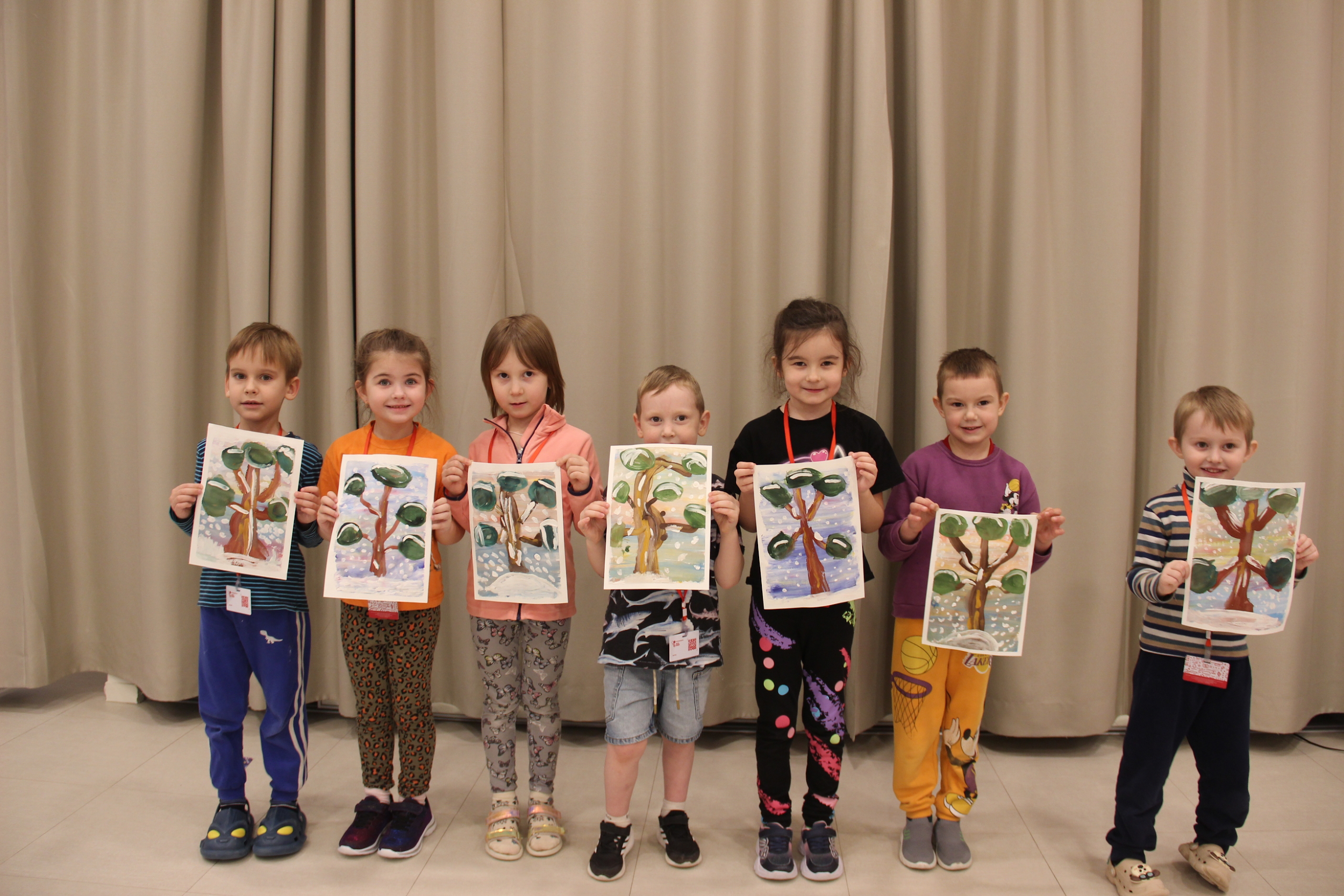 Зимнее настроение передают рисунки наших ребят, не правда ли? И сами тоже довольны: как здорово у них получилось!