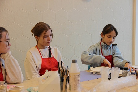 Под руководством Анны ребята создали картину-панно в форме яблок, погрузились в процесс и получили удовольствие от него. Эпоксидная смола выглядит как карамель на яблочке, кажется, это хочется съесть...