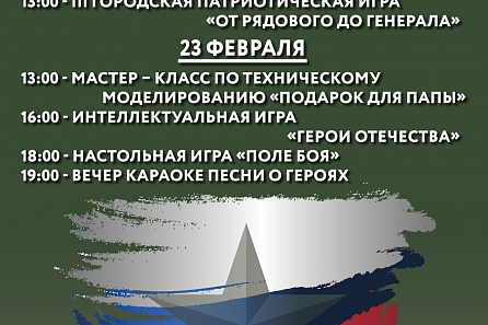 Приходи 21 февраля и 23 февраля на наши мероприятия. Вместе мы сделаем уникальные подарки для близких, поиграем и классно проведем время. Изучай афишу и присоединяйся!